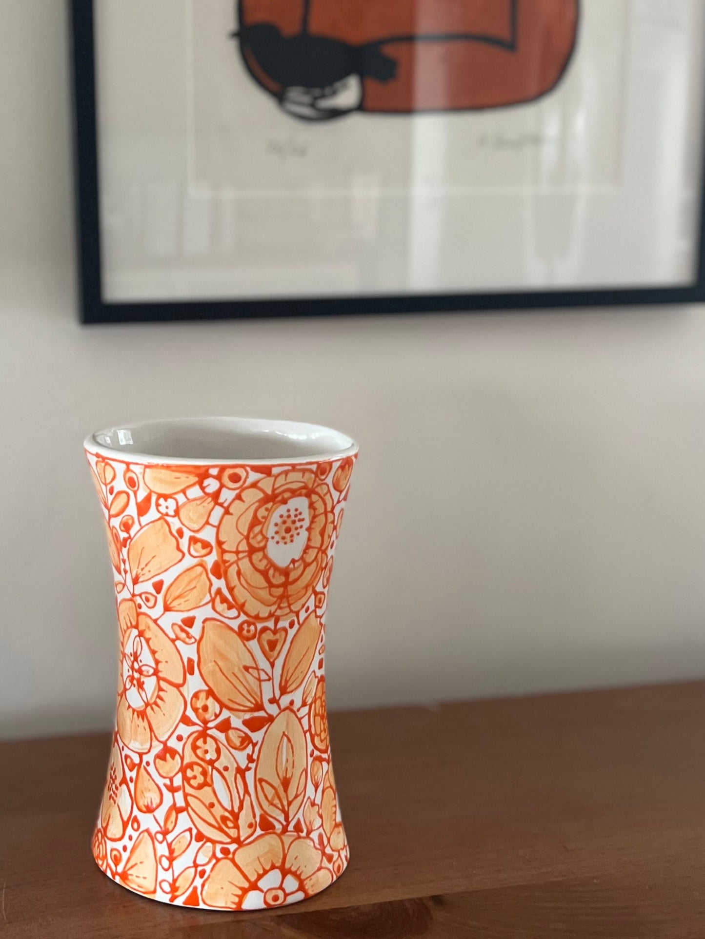 Gather your favorite flowers to display in this hand painted vase with flare opening. Each piece is made to order and is one a kind.