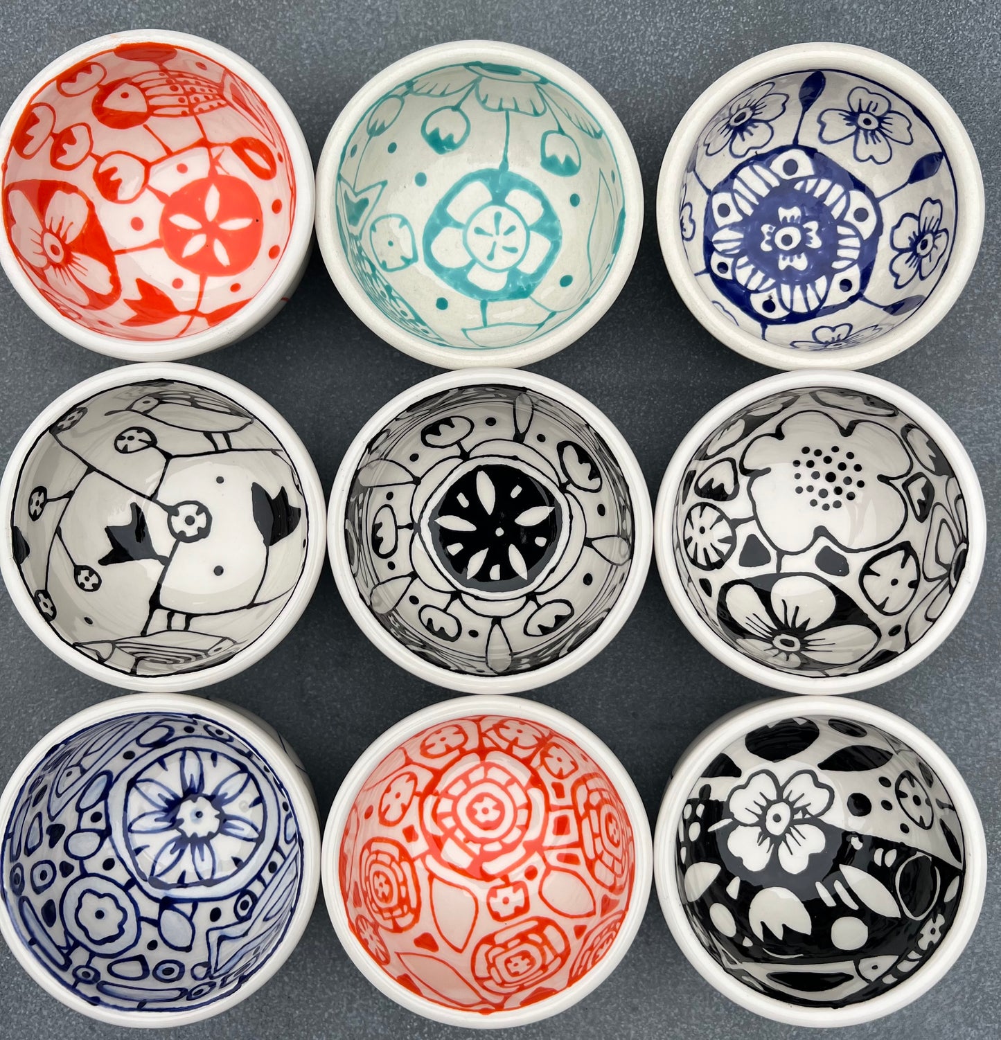 3” ramekin/ small bowl/ sauce cups are the perfect size for a multitude of uses. From serving dipping sauces, jams and mustards for your charcuterie board to holding spare change, desk items and jewelry. These hand painted, one of a kind bowls feature coastal and floral motifs